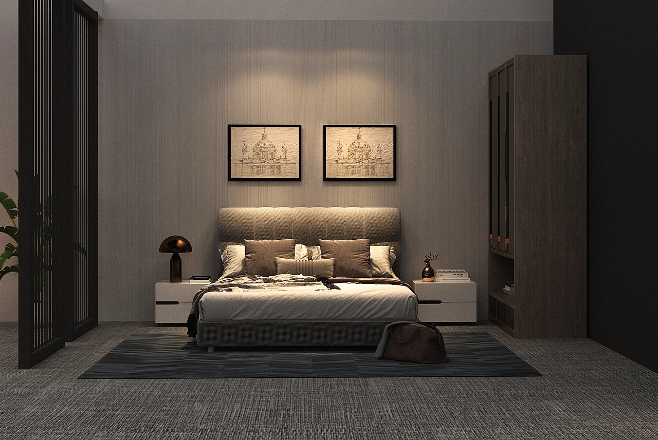 展臺設計搭建面積為200平方米,展臺面積較大,在展臺搭建中使用木質結構作為墻面,在最外層,用密集的黑色線條搭建了特色的窗簾,給展臺氛圍帶來一種朦朧的美感。展位布置了灰色的地毯,搭配暖黃色的燈光,使得參展群眾在舒適溫馨的展臺空間中參觀展位展示的展品,行走其中,仿佛感受到家的溫暖。