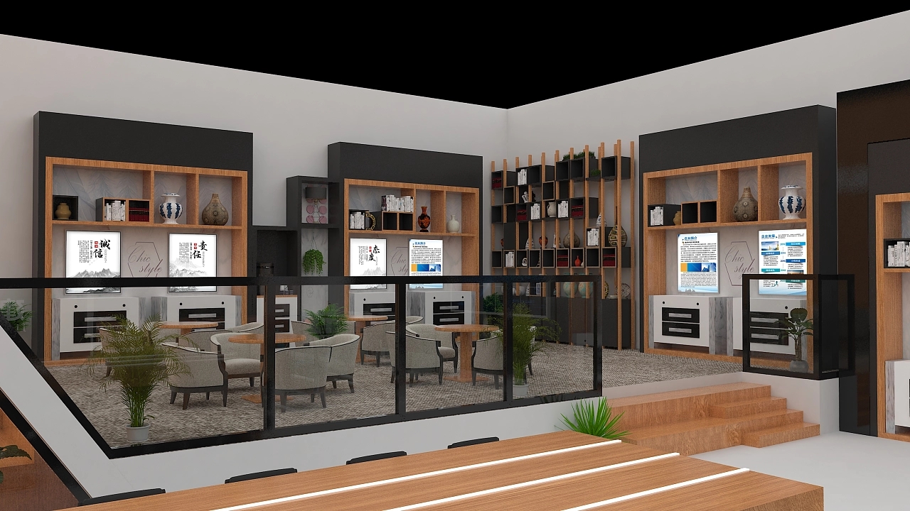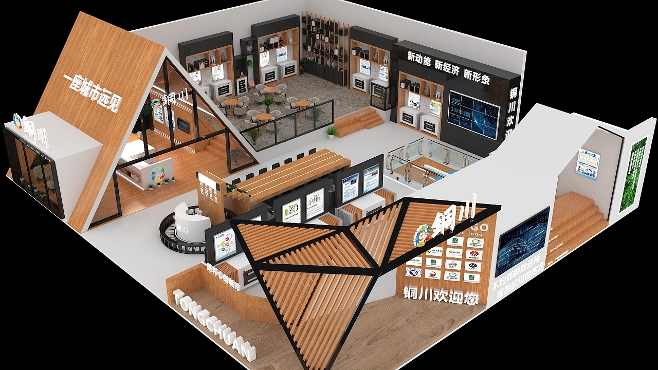 該城市展臺占地面積為500平方米,展臺搭建采用木質結構進行搭建,按不同的功能區進行展臺布局的劃分,包括客戶洽談區、模型展示、VIP洽談區、產品展示區等各區域,整個展臺設計現代感十足,整個展臺設計簡潔、樞密有度、不繁雜,簡約大氣,將銅川藥企的底蘊悠然呈現。